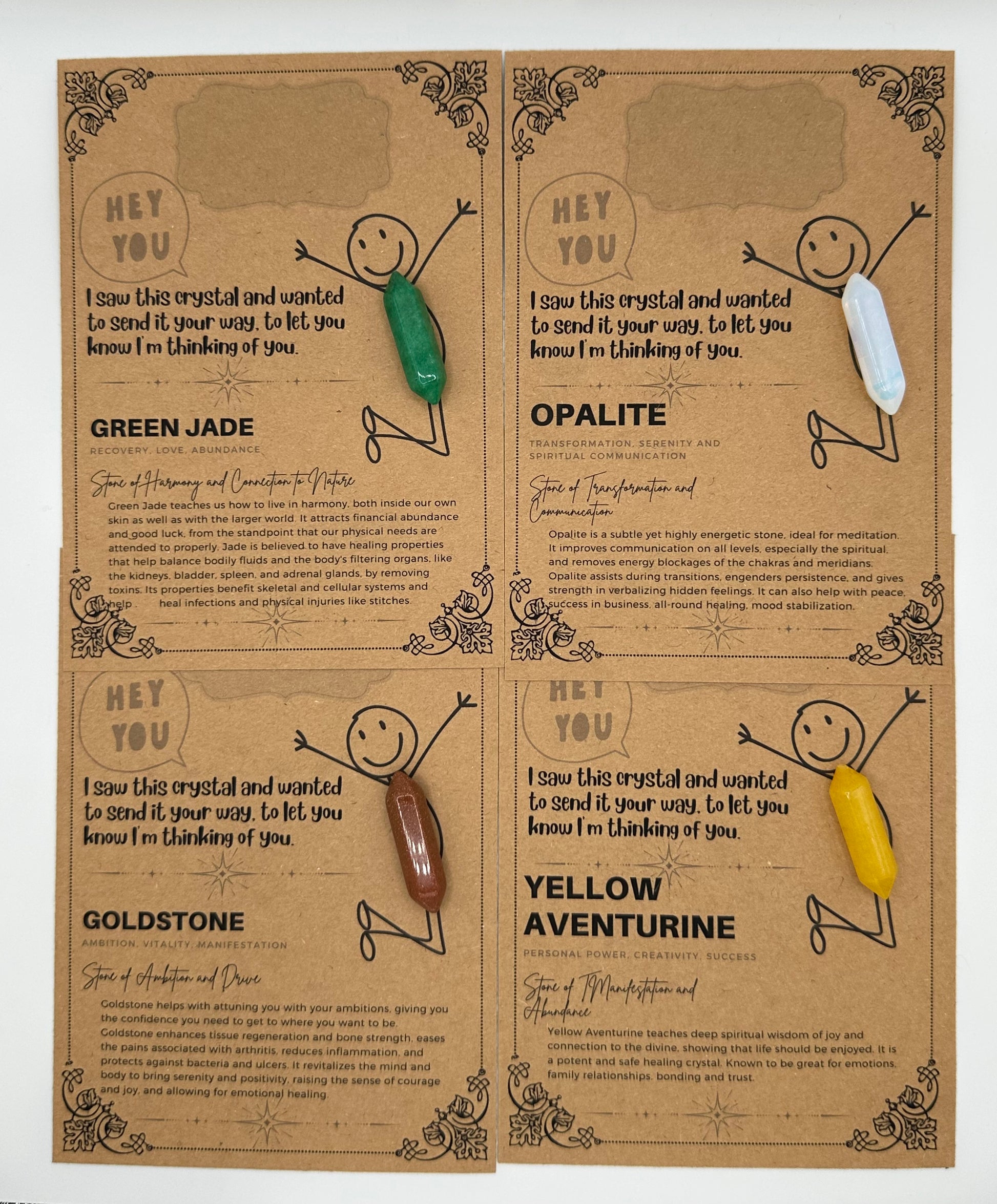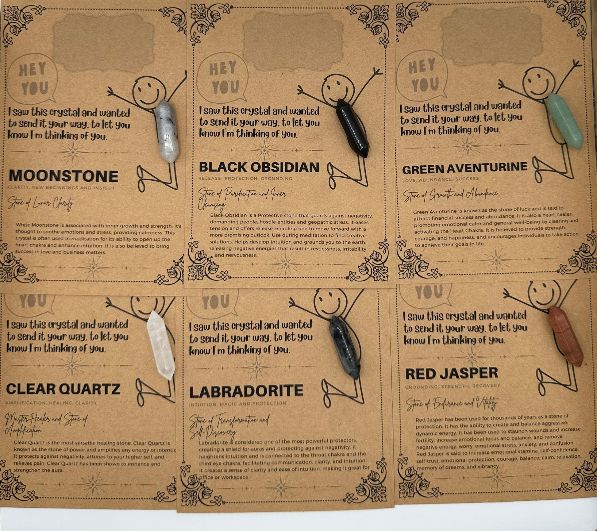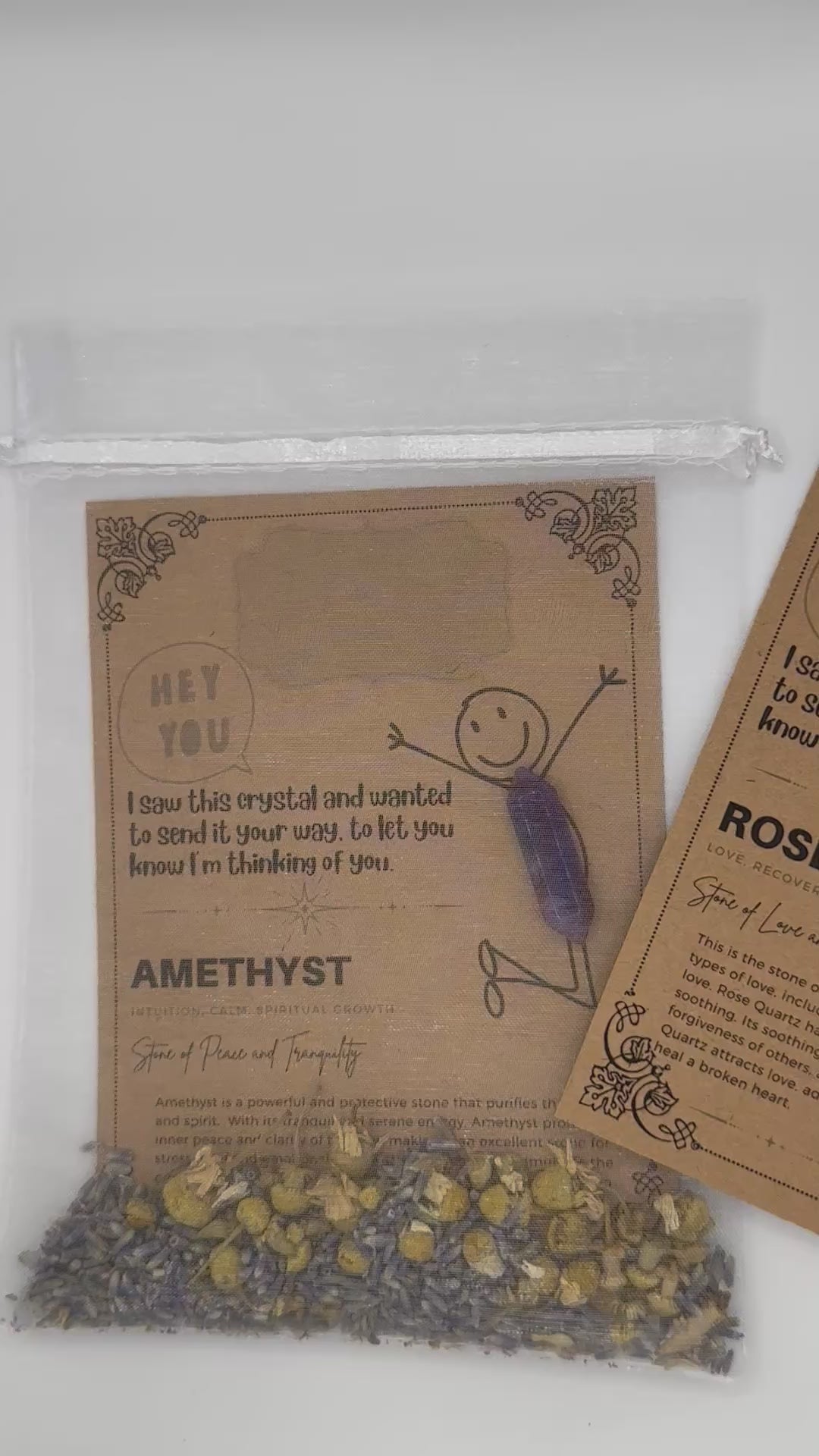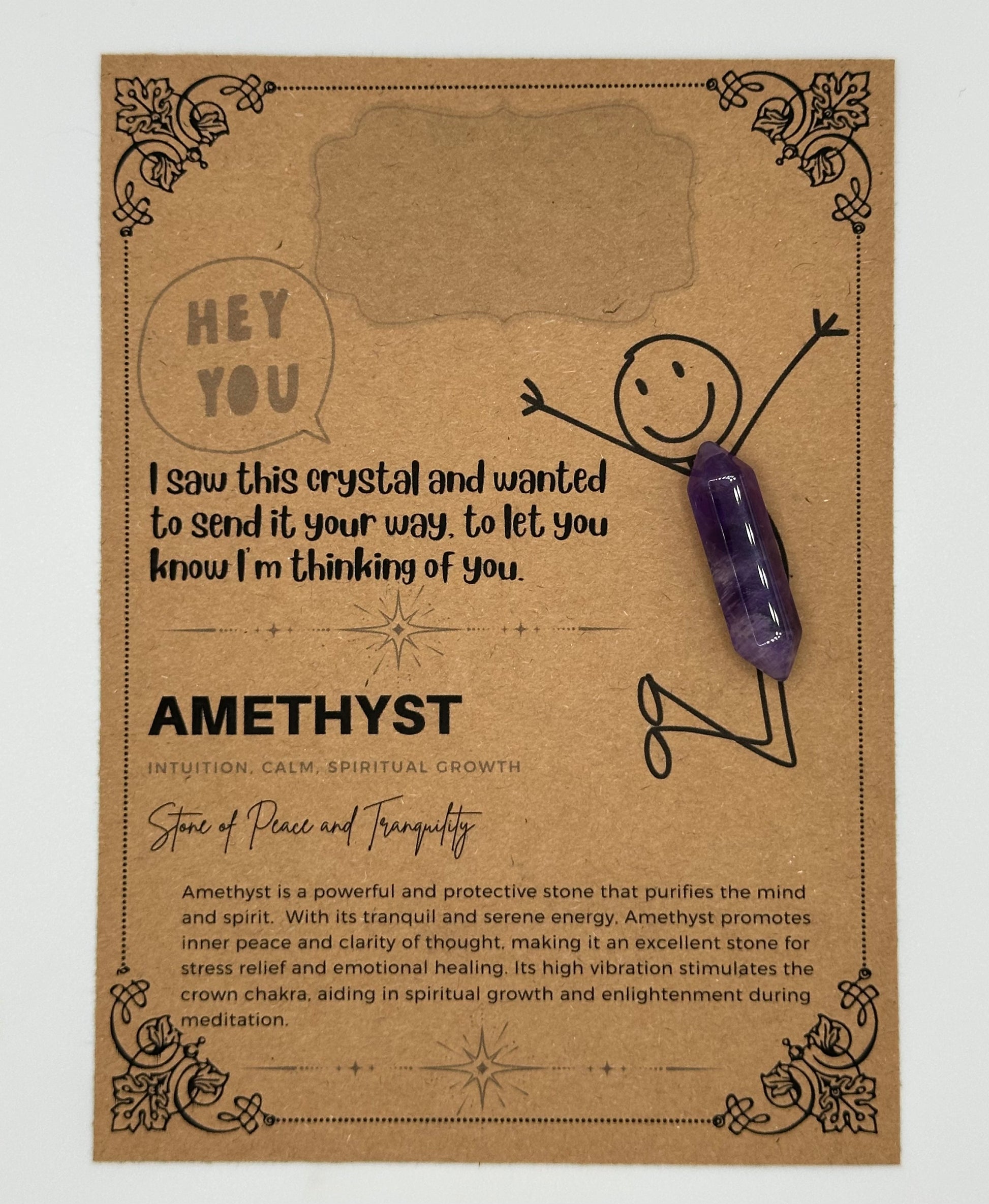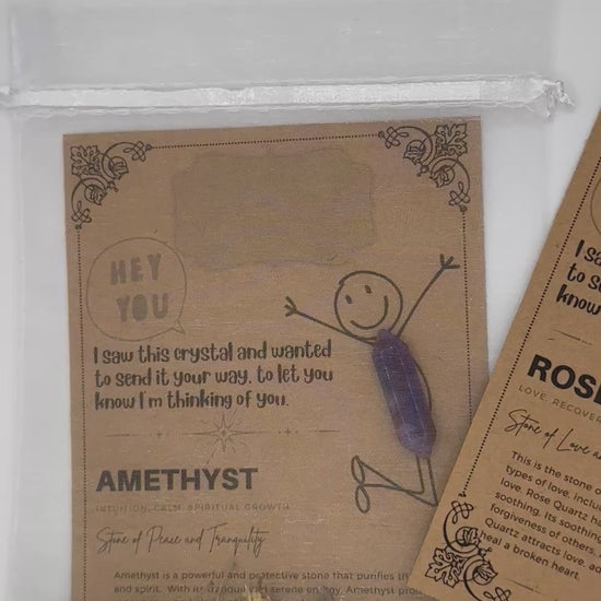 What a cute way to let someone know you are thinking of them. Great for friends, family, work colleagues and partners... all year round. A REAL double pointed hexagonal healing crystal gemstone mounted on each card, provided in an organza gift bag ready for you to gift (complete with dried flowers), along with a crystal description and crystal care card. The crystals are easy to remove from the cards, and are ideal in size to put in pocket, purse, handbag etc.